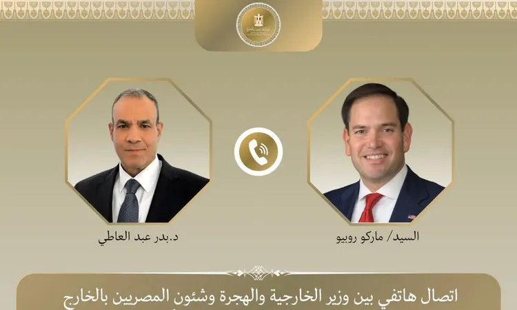 تلقى الدكتور بدر عبد العاطي وزير الخارجية والهجرة وشئون المصريين في الخارج، مساء الاثنين ٢٩ سبتمبر الجاري، اتصالا هاتفيا من “ماركو روبيو” وزير خارجية الولايات المتحدة الأمريكية.